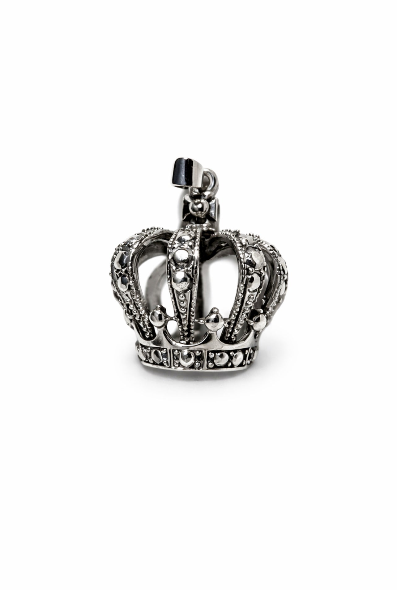 Sterling silver pendant shaped like a regal crown with intricate detailing. Weighs 12 grams and hangs beautifully on most chains. Perfect for layering or wearing alone as a statement piece. Pendant only—chain not included