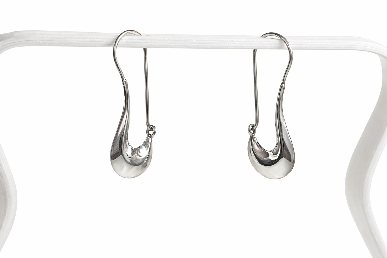 Soft sculptural silver earrings with a rounded teardrop shape. They catch the light with every movement and weigh a comfortable amount for all-day wear. Classic enough for everyday use yet eye-catching.