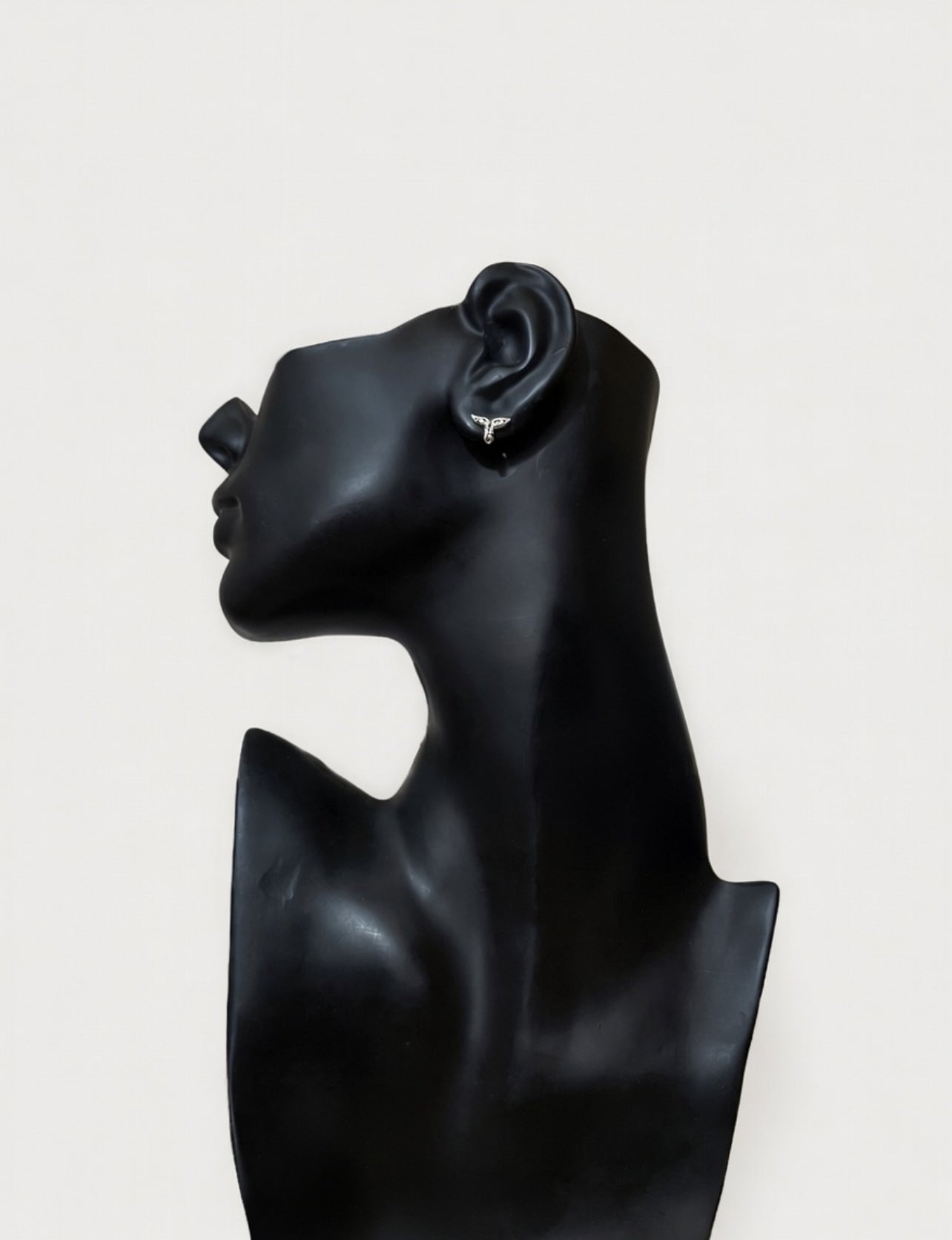 Sterling silver earrings shaped like whale tails. Smooth polished finish and subtle curves give these earrings a clean, elegant look for everyday wear.